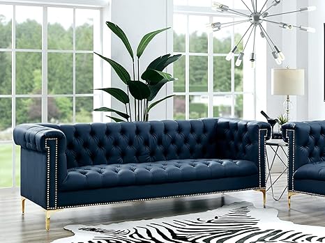 Amazon Com Oxford Navy Leather Chesterfield Sofa Gold