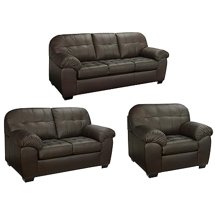 Details About Corliving Club 3 Pc Chocolate Brown Tufted Bonded Leather Sofa Set