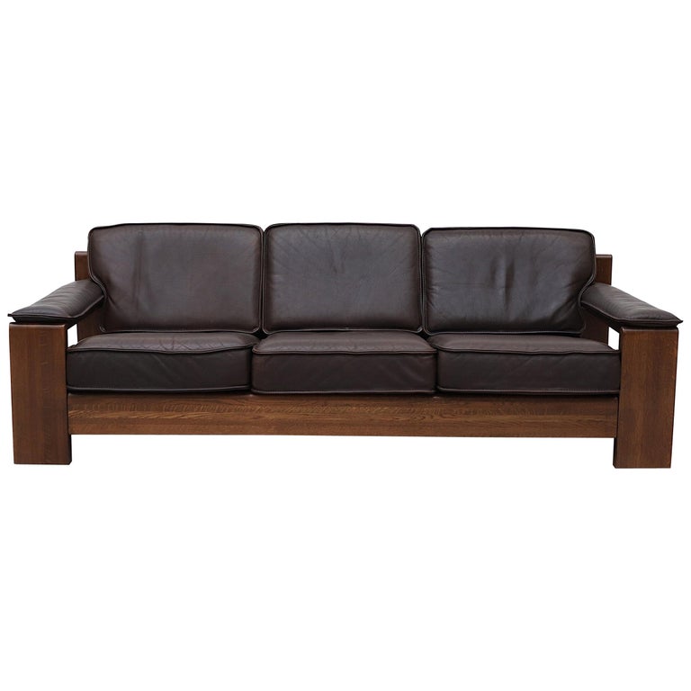 Leolux 3 Seater Leather And Oak Sofa For Sale At 1stdibs