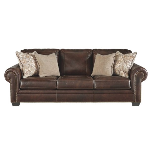 Signature Design By Ashley Larkinhurst Queen Size Faux Weathered Leather Traditional Sleeper Sofa Earth