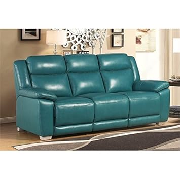 Abbyson Graham Canape Inclinable En Cuir Graine Turquoise