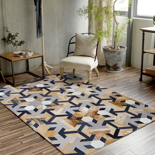 Acheter Salon Americain Chambre Lit En Peau De Vache Tapis En Cuir Veritable Cousu A La Main Table De The Canape Simple Tapis De Peau De Vache De