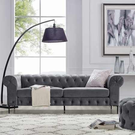 Jordan 90 Wide Tufted Dark Gray Velvet Sofa