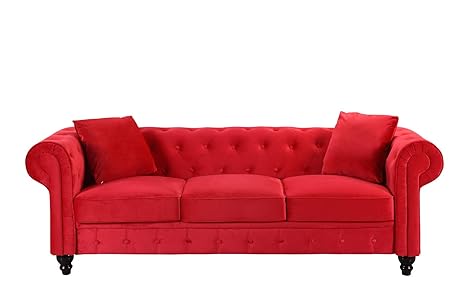 Divano Roma Furniture Classic Velvet Scroll Arm Tufted Button Chesterfield Sofa Red