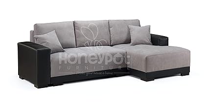 Honeypot Cimiano Corner Sofa Bed Faux Leather Fabric Black Grey Right Hand