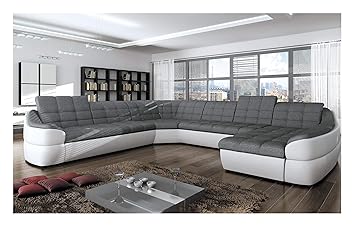 Bmf Infinity Xl White Grey 6 Seater Extra Large Faux Leather Fabric U Shape Corner Sofa Bed Comfort Right Facing 390cm X 310cm
