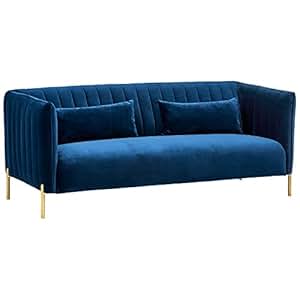 Rivet Frederick Mid Century Modern Tufted Velvet Sectional Sofa Couch 77 5 W Navy Blue