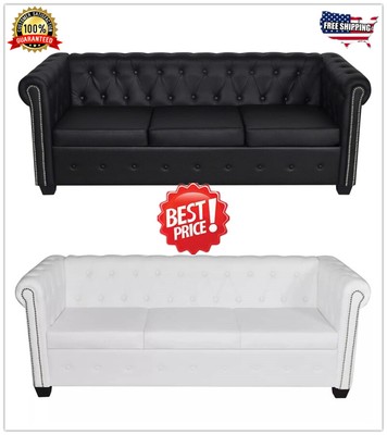 Chesterfield 3 Seater Sofa Artificial Leather Home Office Sofa Set Black White Ebay