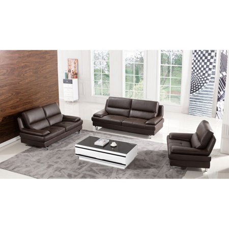 American Eagle 3 Piece Dark Brown And Cream Bonded Leather Sofa Set