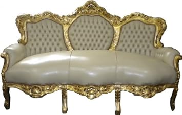 Casa Padrino Baroque Sofa Set Cream Gold Leather Look