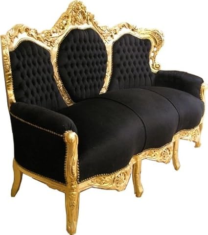 Baroque Napoleon Iii Sofa Black Velvet Fabric And Gold Wood