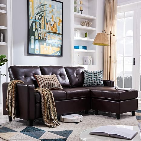 Honbay Convertible Sectional Sofa Couch Leather L Shape Couch With Modern Faux Leather Sectional For Small Space Apartment Brown