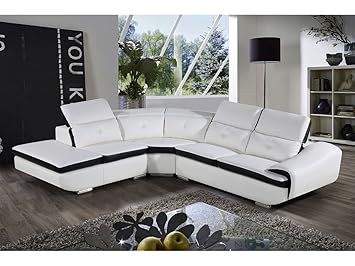 Canape Cuir 3 Places Noir Blanc Montreal Achat Vente