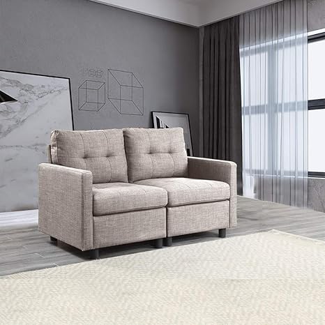 Contemporary Upholstered Modular Sectional Couch Loveseat Sofa Grey
