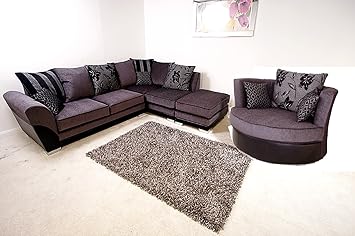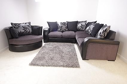 Details About Brand New Lucy Lush Corner Sofa Suite Cuddle Swivel Chair Black Grey Brown Mink