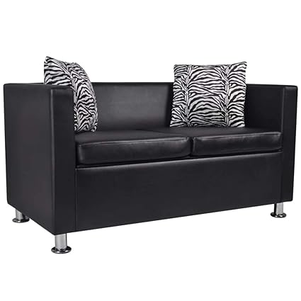 Nouveau Modele Canape 2 Places En Faux Cuir Avec Coussins Dark Beige