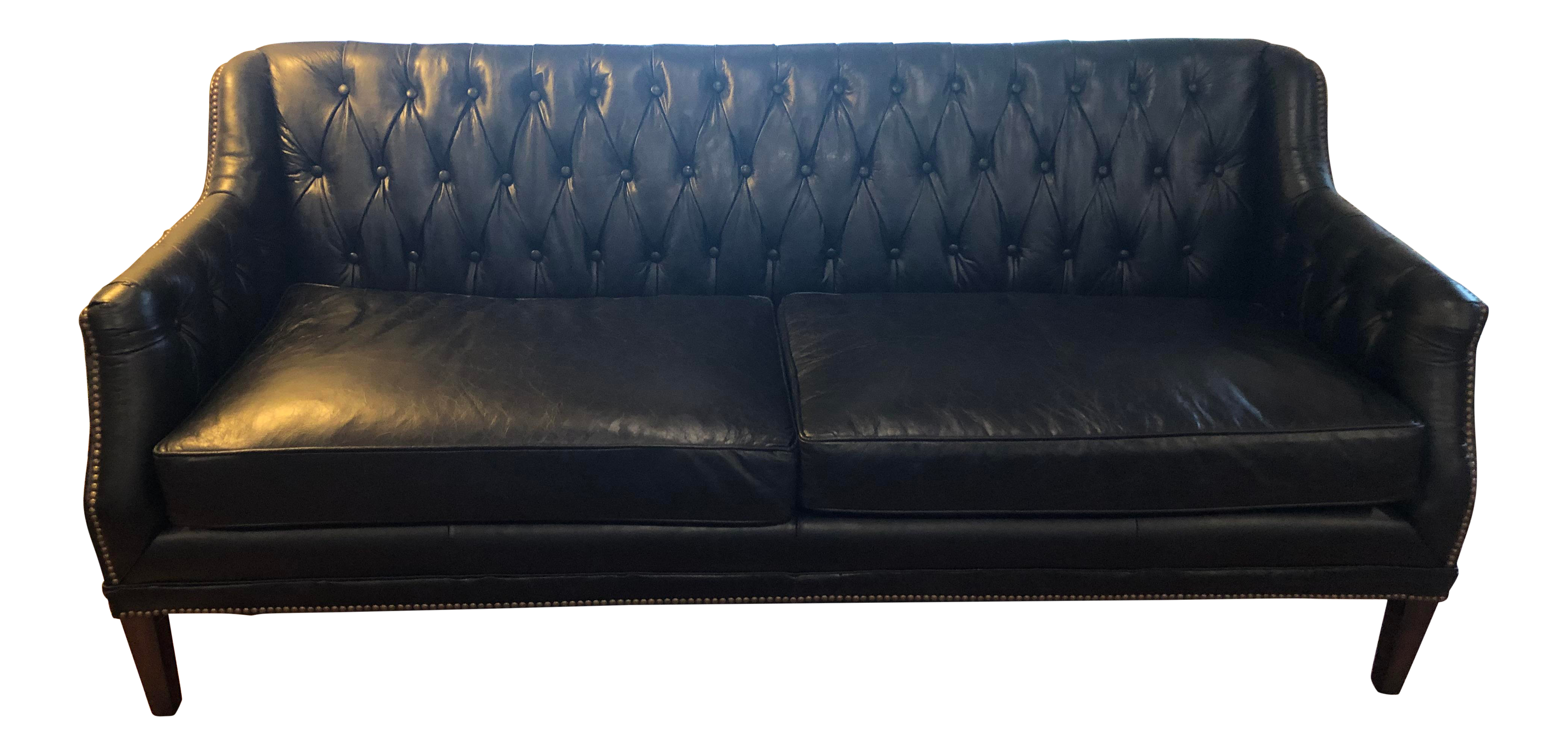 Tufted Leather Sofa In Saddle Black With Nailhead Trim