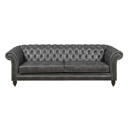 Emerald Home Capone Charcoal Gray 94 Sofa With Faux Leather Upholstery Nailhead Trim And Rolled Arms