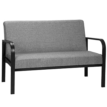 Woltu Sks08gr Canape De Salon 2 Places Fauteuil Club Fauteuil Banquette En Acier Et Tissu Gris