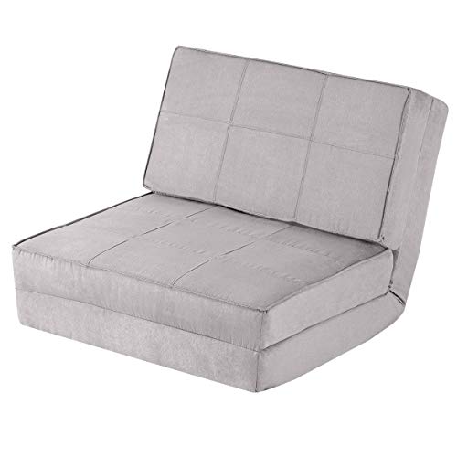 Giantex 5 Position Adjustable Convertible Flip Chair Sleeper Dorm Game Bed Couch Lounger Sofa Chair Mattress Living Room Furniture Gray