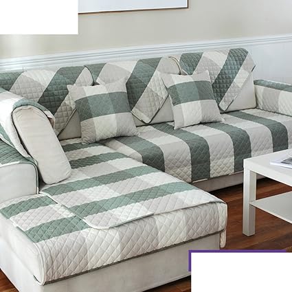 European Style Plaid Sofa Cover Cotton Linen Fabric Four