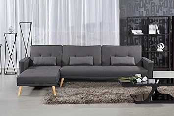 Bhdesign Ashley Xl Canape D Angle Convertible Design Tissu Coloris Gris Fonce