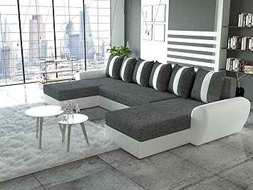 Canape D Angle Convertible Gris Fonce Et Simili Cuir Blanc Oslo Vistadeco